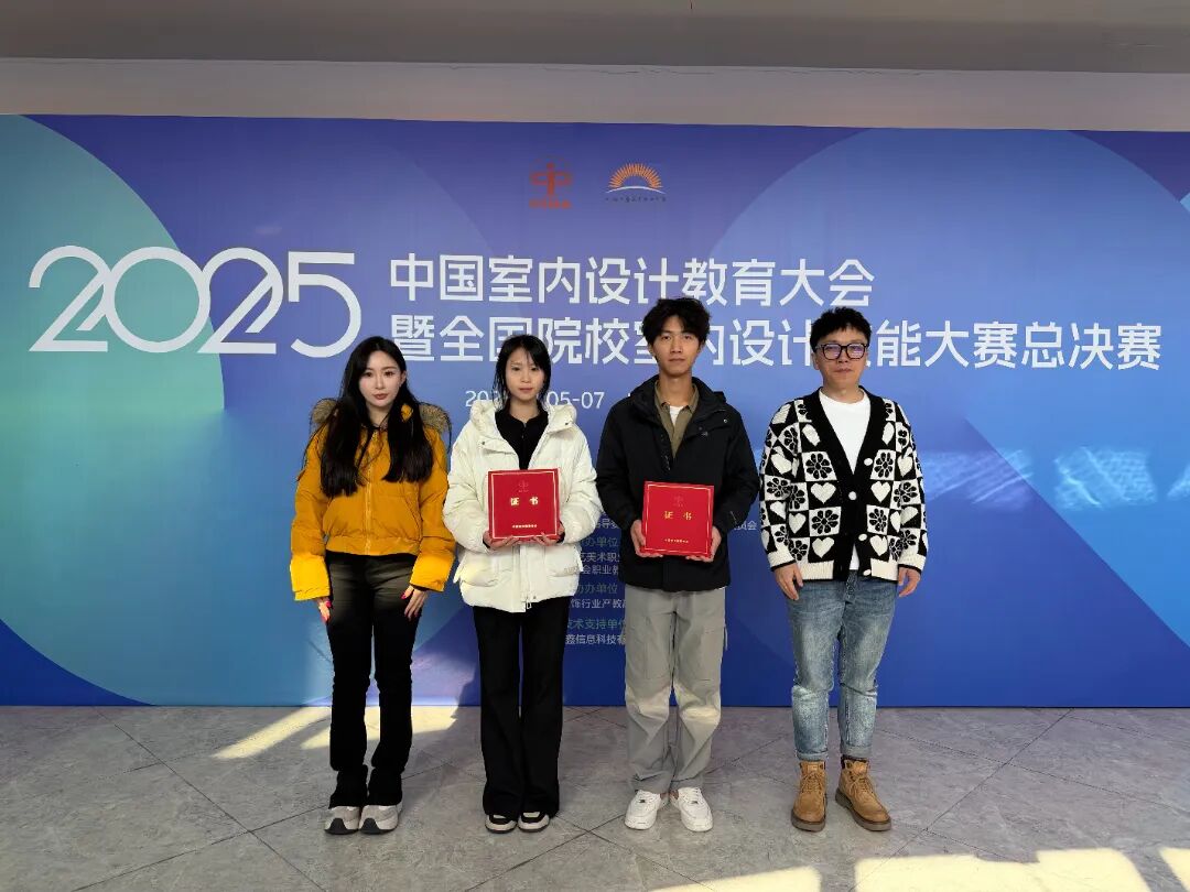近日,由中国室内装饰协会主办的“2025年全国院校室内设计技能大赛”总决赛在上海工艺美术职业学院举行。我校艺术学院环境艺术设计专业学生吴昀阳、陈子杰,在指导教师苏立鹏、张杨婧怡的指导下,荣获高职组三等奖。